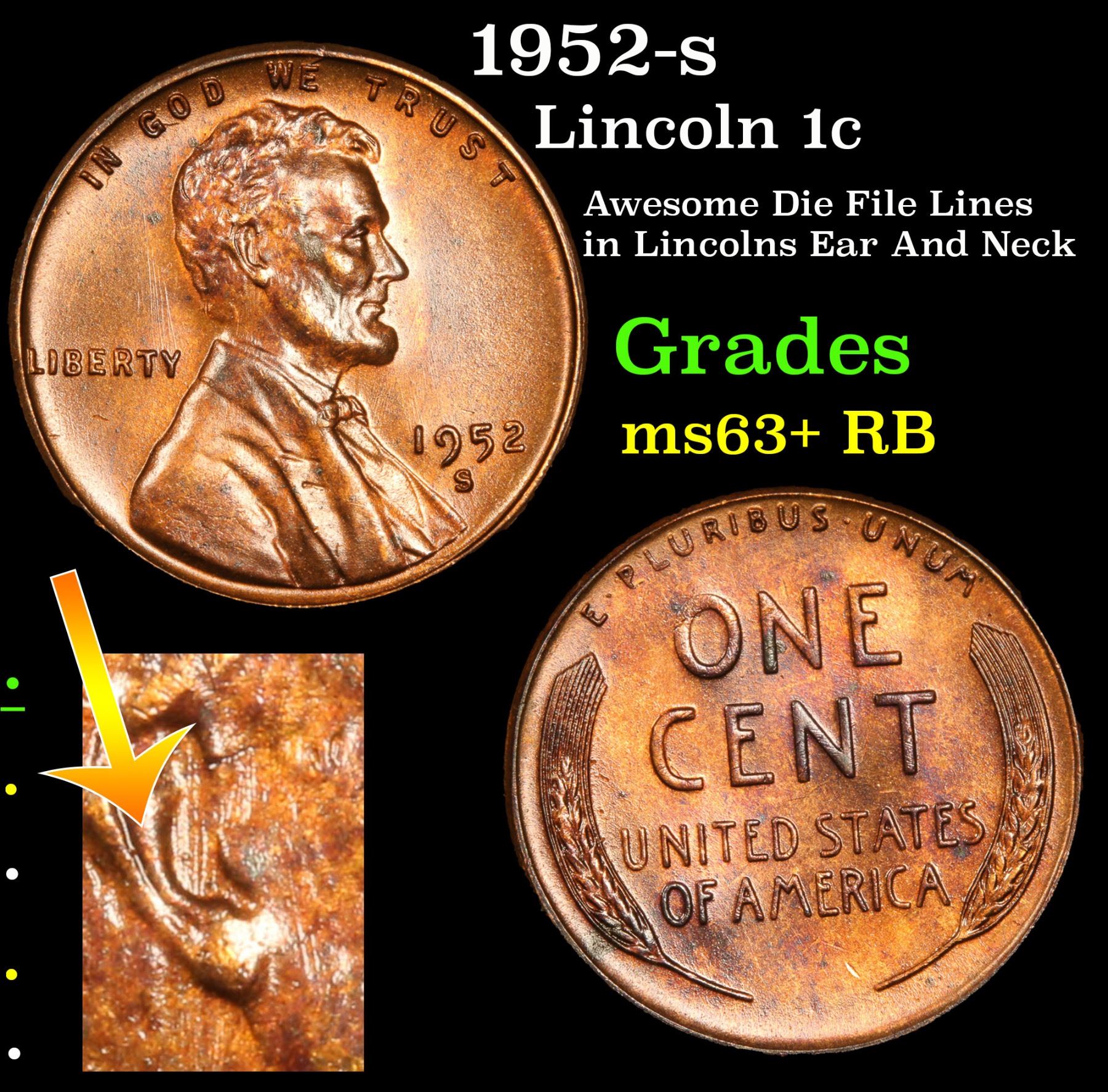 1952-s Awesome Die File Lines in Lincolns Ear And Neck . Lincoln Cent 1c Grades Select+ Unc RB. A Corey's Pick