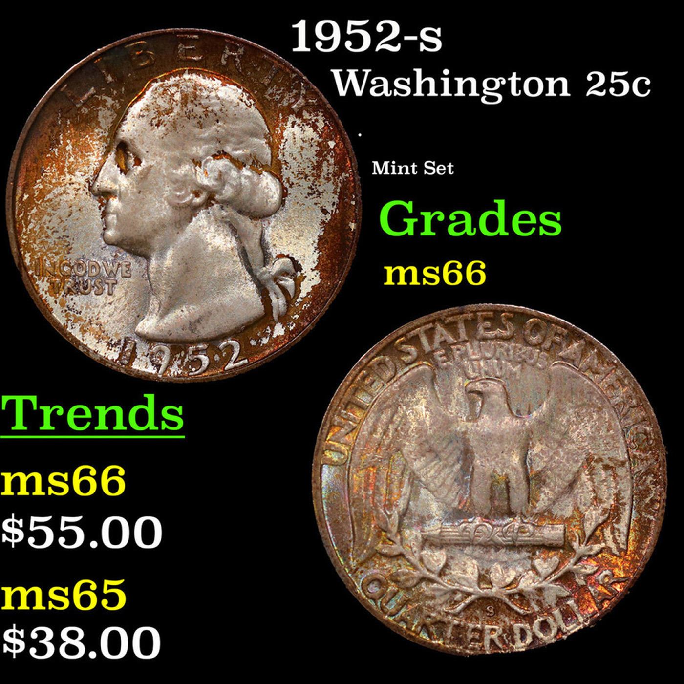 1952-s Washington Quarter 25c Grades GEM+ Unc.