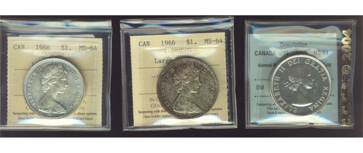 1953 $1 NSF & 1966 MS64. Lot of 3 coins ICCS with exception of 1953 CCCS.