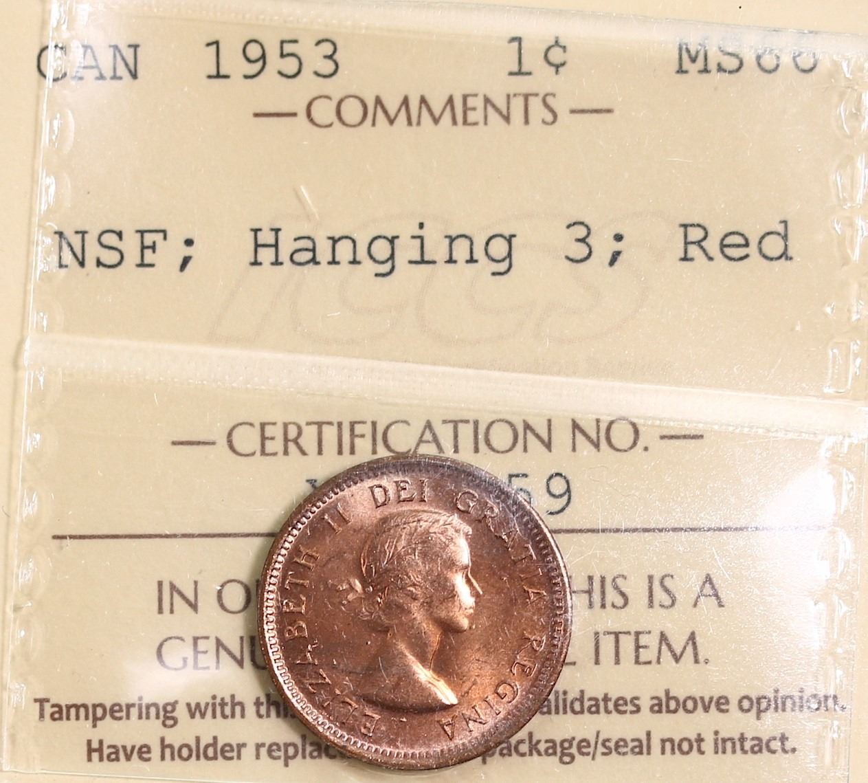 1953 1¢ "NSF - Hanging 3" ICCS Superb Gem Mint State-66 Red 100% Red Lustre.