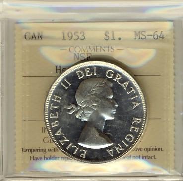 1953 $1 NSF ICCS MS64 Heavy Cameo