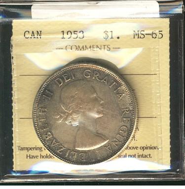 1953 $1 NSF ICCS MS65. Superbly toned.
