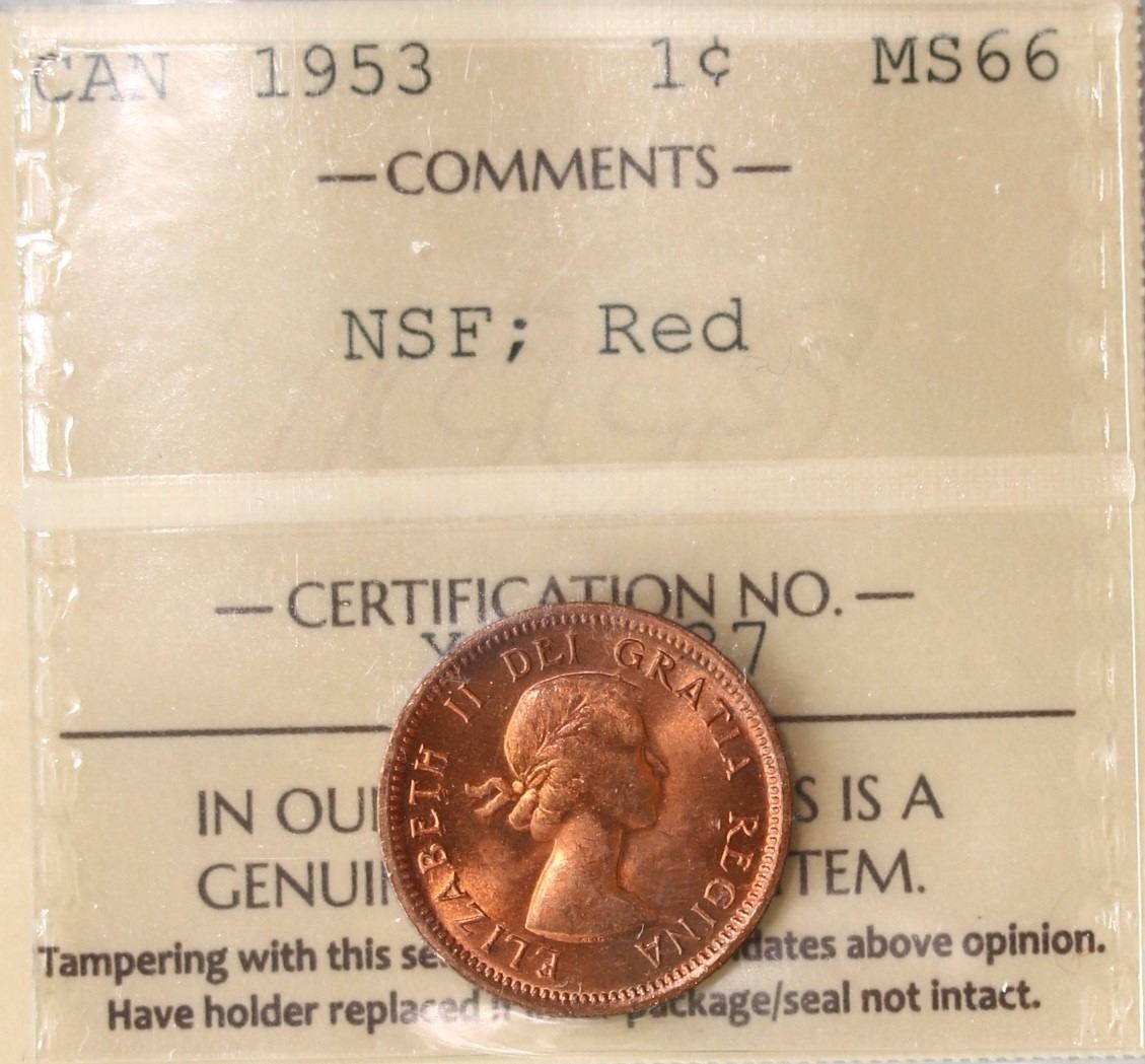 1953 1¢ "NSF" ICCS Superb Gem Mint State-66 Full red. Very flashy coin.
