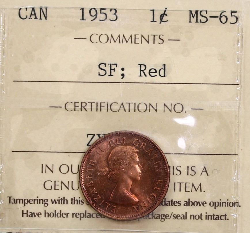 The cataloguer has taken every reasonable measure to ensure that all of the lots in this sale are as described and genuine. All raw coins and banknotes have been graded by the cataloger or the auction house which represent our best professional opinion. To grade coins and banknotes, we use Canadian grading standards, 42 years of experience and good conscience. However, grading is a subjective description in the opinion of the cataloger or the auction house. Among experts there are often differences of opinion on the grading and the eye appeal of a coin. The strike and the state of preservation are often debated. The Canadian Numismatic Company acts as an agent between consignors and buyers. The Canadian Numismatic Company does not guarantee that any coin or banknote cataloged will meet the standards, or the grade, of any third party grading companies. No warranty, whether impressed or implied. Items are as is, no warranty given. We cannot accept responsibility and waive all liability resulting in financial losses, and or incidentals accruing from the sale of any items, nor can we guarantee that items graded by third party services will grade the same if submitted to a different grading service or re-submitted to the same company. Statements by The Canadian Numismatic Company regarding the condition, the eye appeal, the strike and the population of items are for guidance only. All lots offered are sold "AS IS". Title to all lots remains with the auction house until paid for in full by the purchaser. But they are held at the risk of the purchaser once the time of the sale.