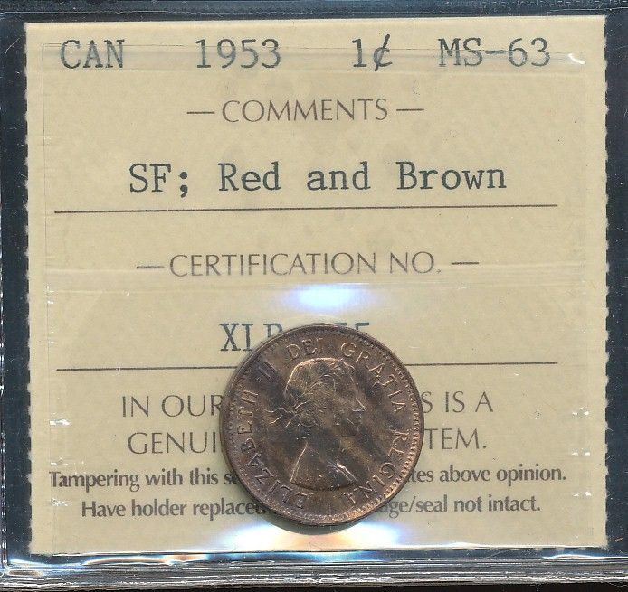 1953 1¢ SF ICCS MS63RB.