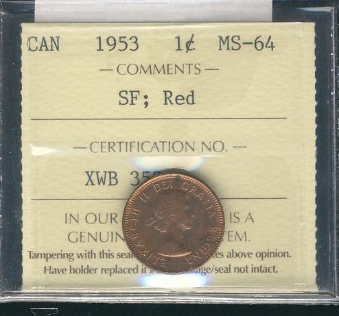 1953 1¢ SF ICCS MS64RD. Tough issue for grade.