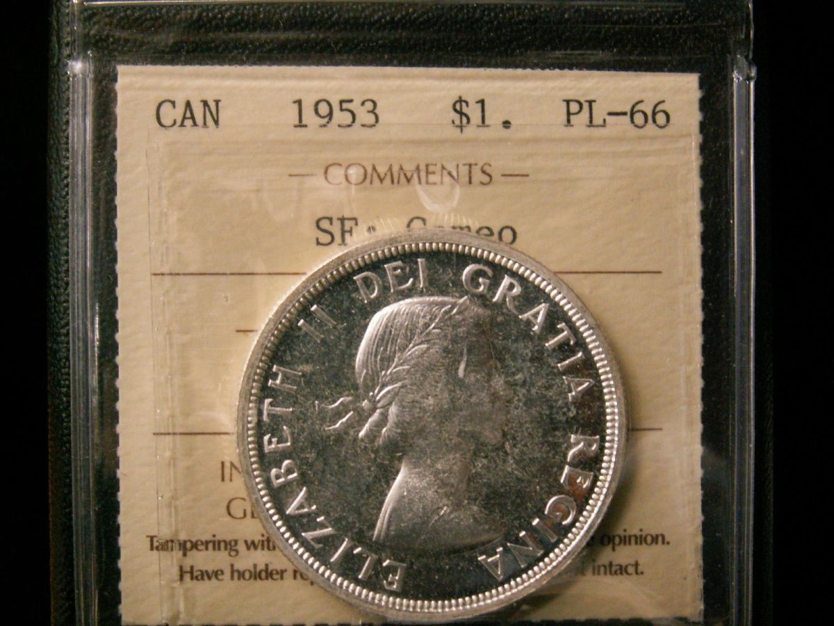 1953 $1 SF ICCS PL66 Cameo. Fully white with great surfaces and lovely reflective fields.