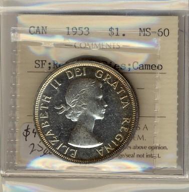 1953 $1 SF Rotated Dies; ICCS MS60 Cameo