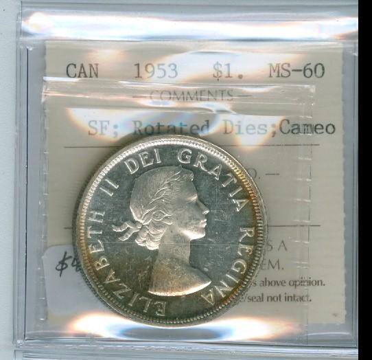 1953 $1 SF, Rotated Dies ICCS MS60. Lustrous with Cameo designation.