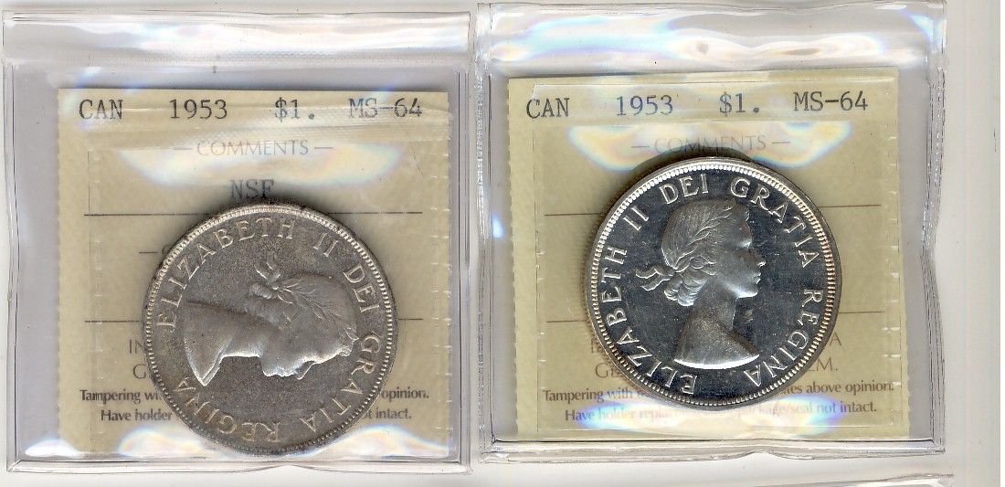 1953 $1 SF, SWL & NSF ICCS MS64. Lot of 2 coins.