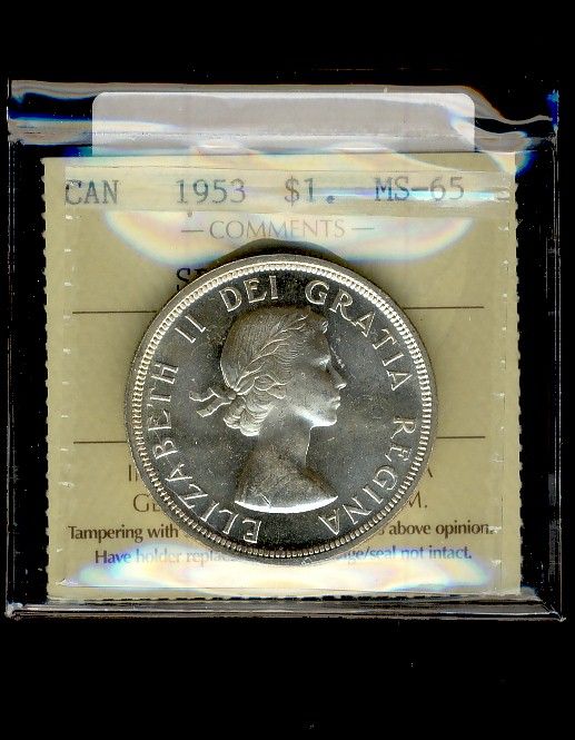 1953 $1 SF , Small Water Line variety ICCS MS65. Fully brilliant.