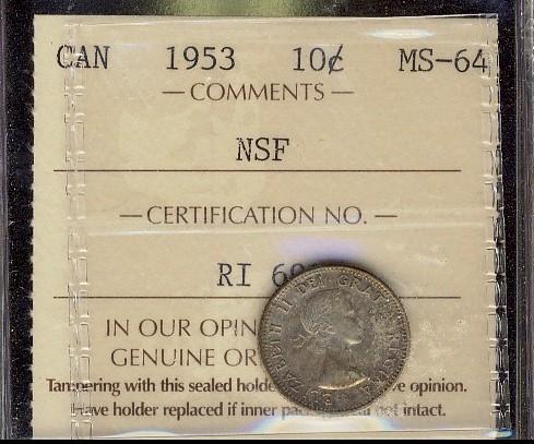 1953 10¢ NSF ICCS MS64.