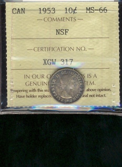 1953 10¢ NSF ICCS MS66. Gem eye appeal.