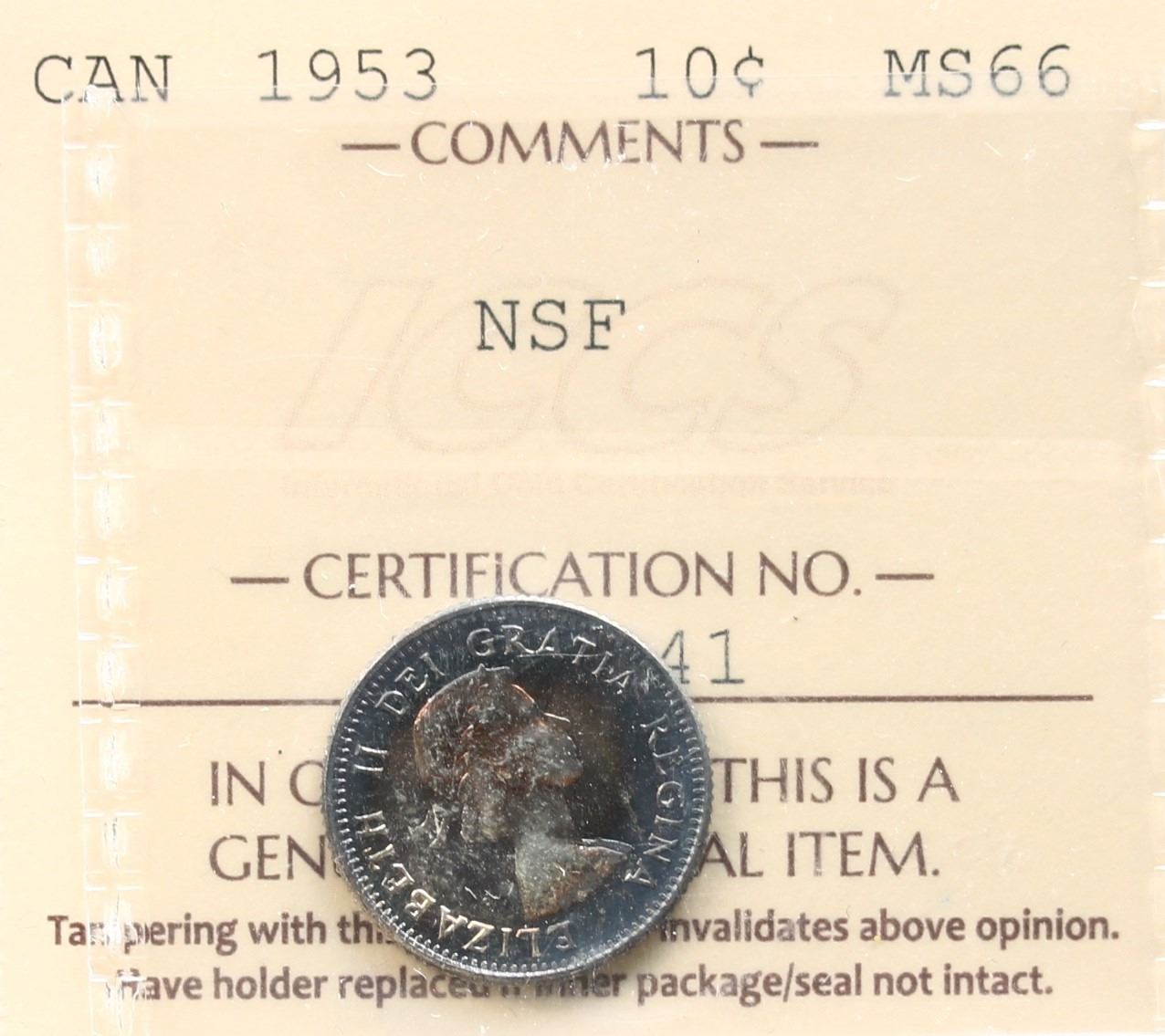 1953 10¢ "NSF" ICCS Superb Gem Mint State-66