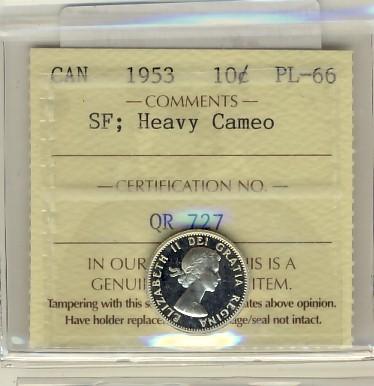 1953 10¢ SF ICCS PL66 Heavy Cameo.