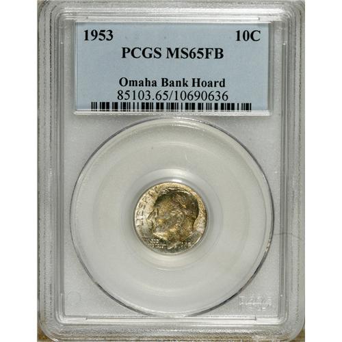 1953 10C MS65 Full Bands PCGS. Ex:Omaha Bank Hoard