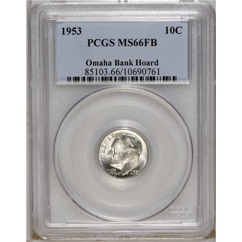 1953 10C MS66 Full Bands PCGS. Ex: Omaha Bank Hoar