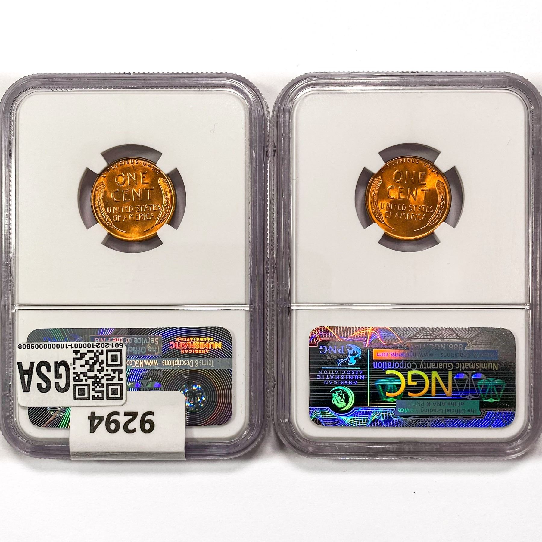 1953, 1952 (Set 2) Wheat Cent NGC MS66 RD