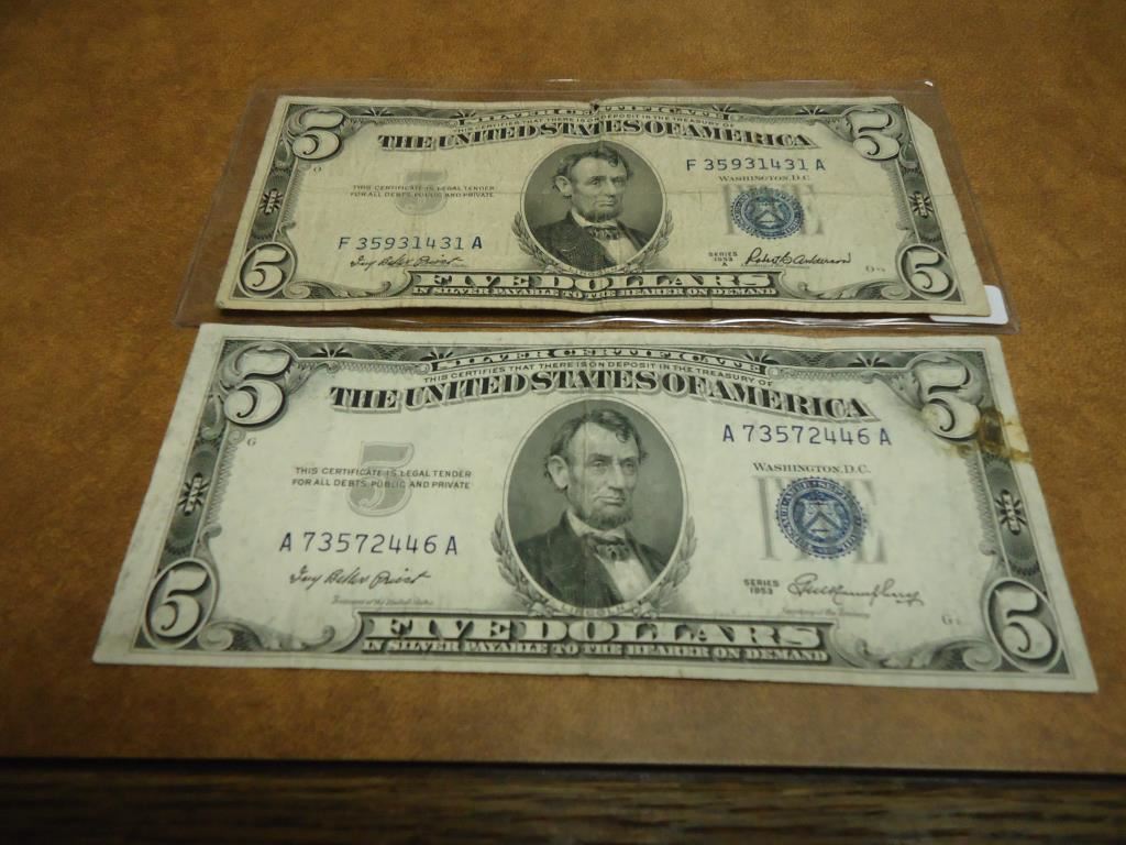 1953 & 1953-A $5 SILVER CERTIFICATES BLUE SEALS