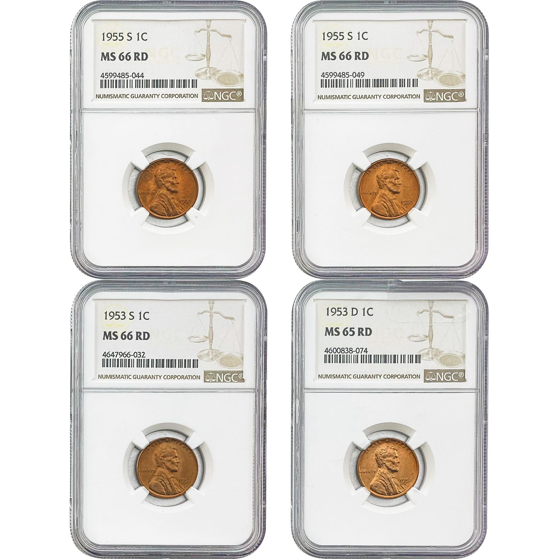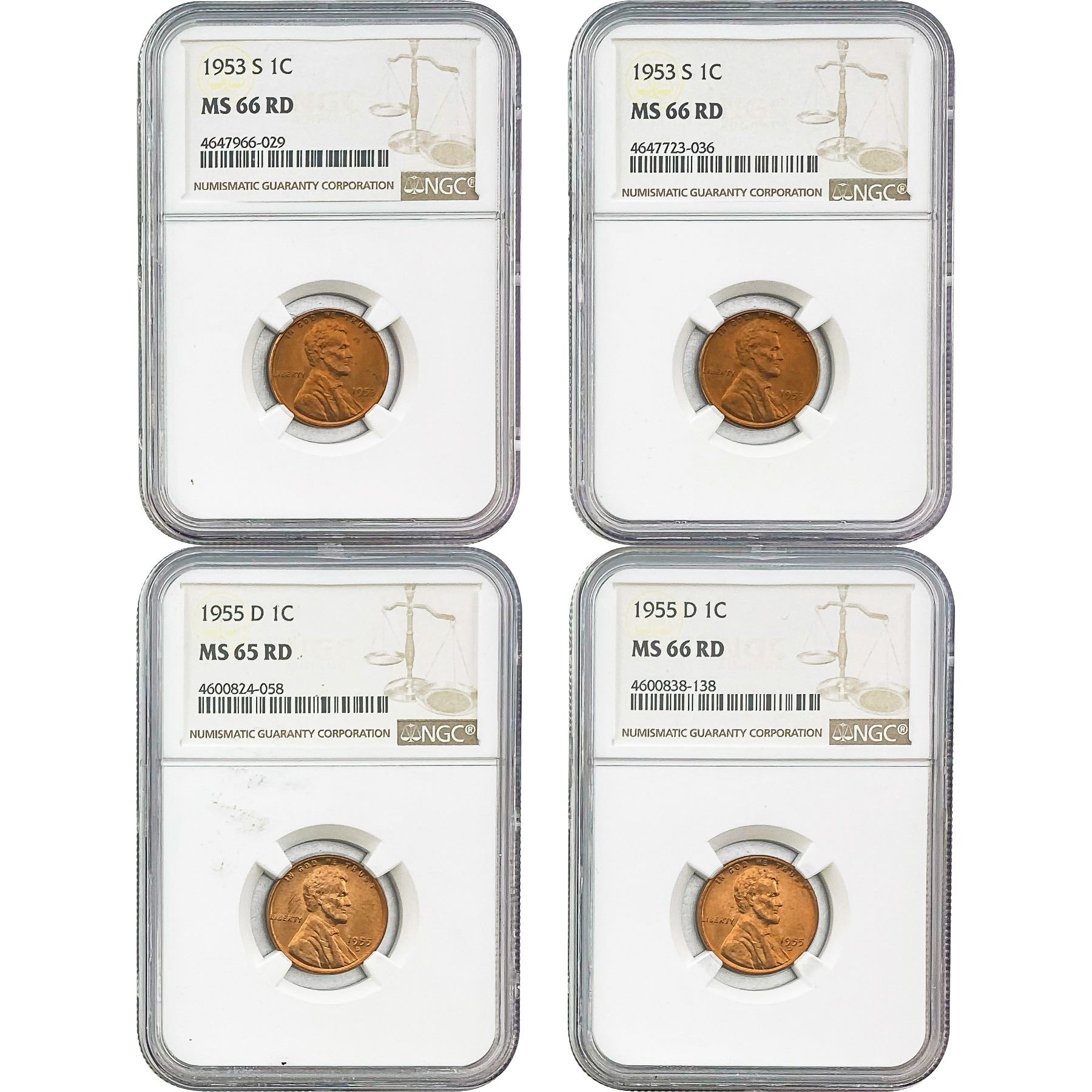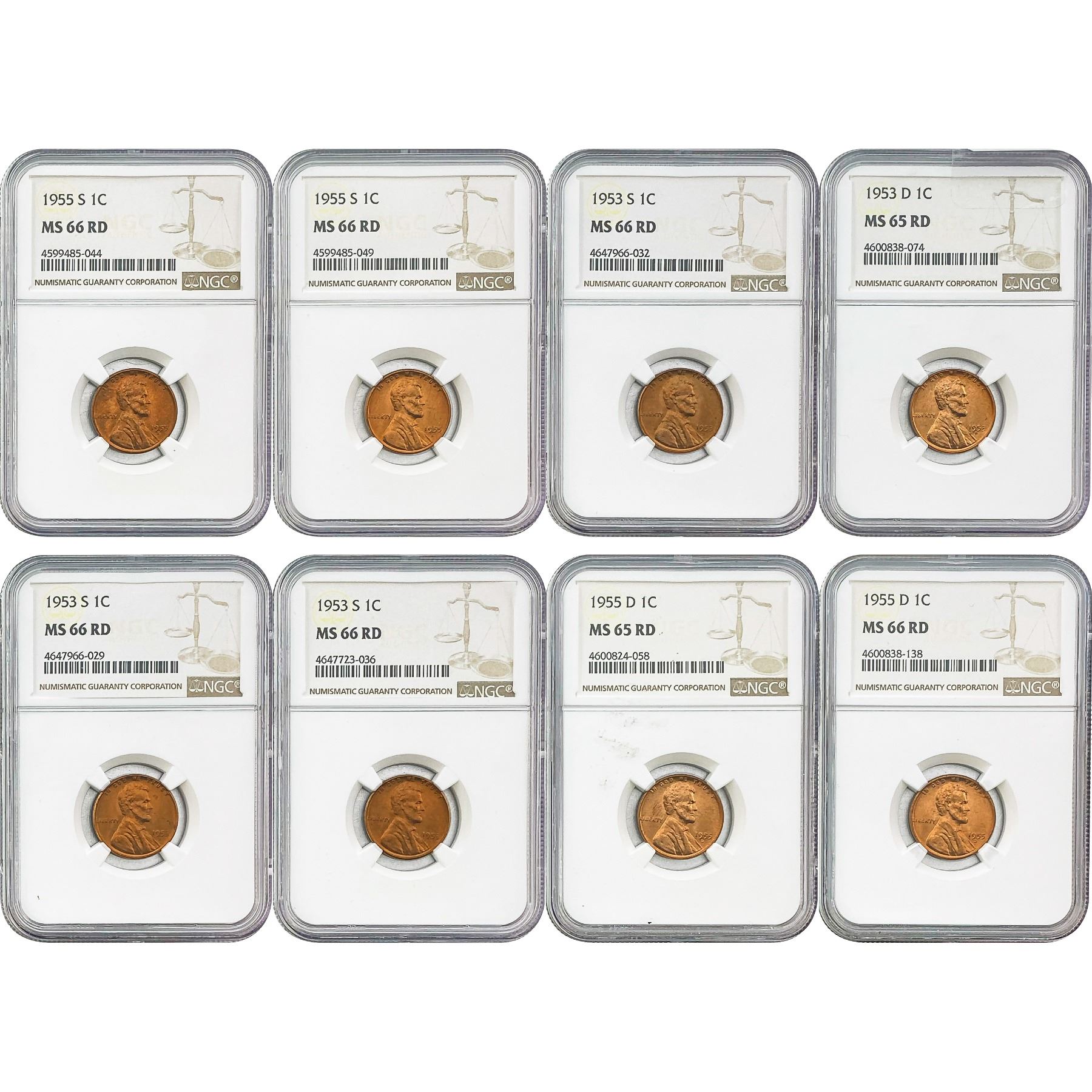 1953-1955 Gem BU Wheat Cent Set [8 Coins] NGC MS65/66 RD