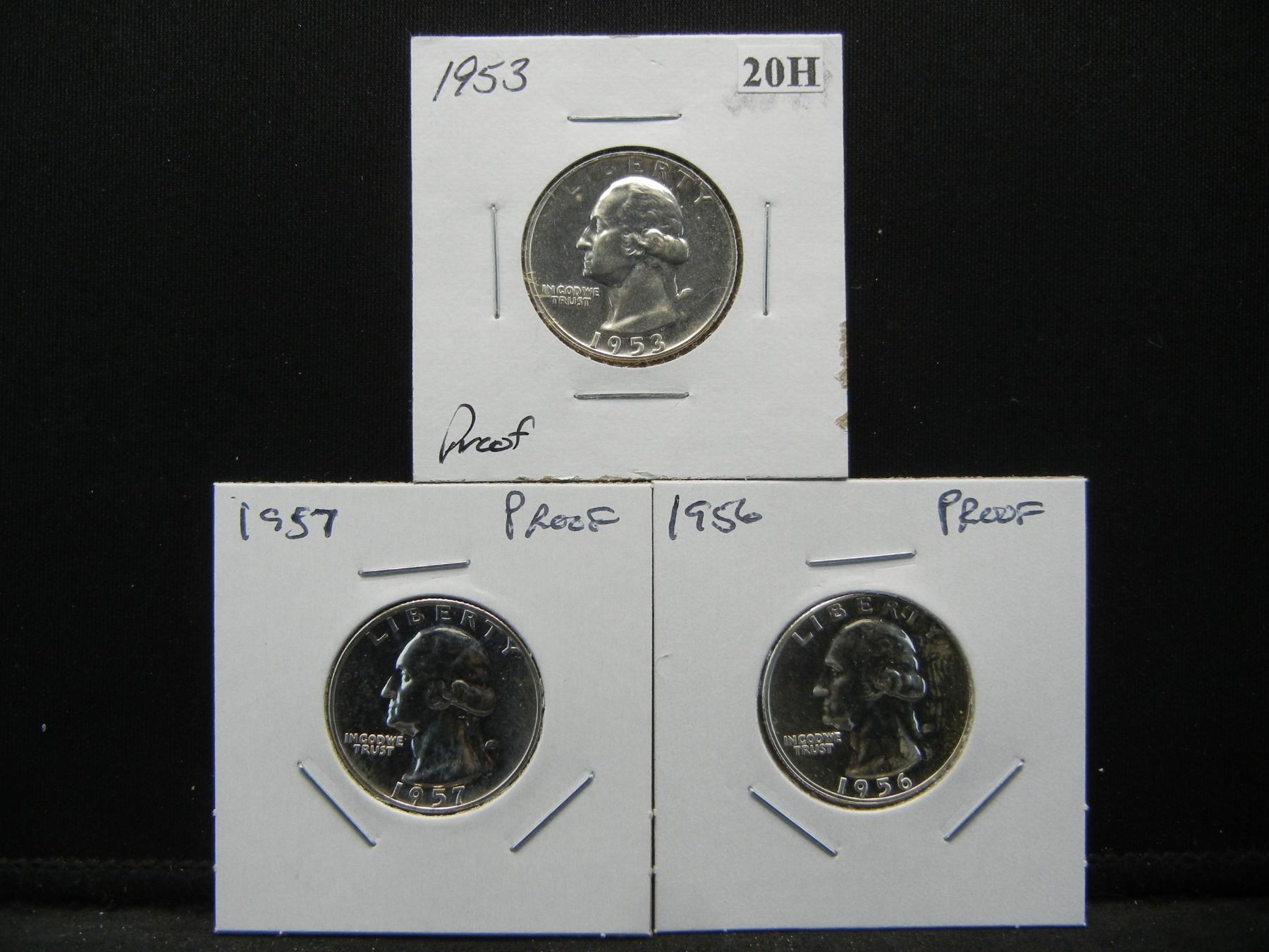 1953, 1956, and 1957 Proof Silver Washington 25c.