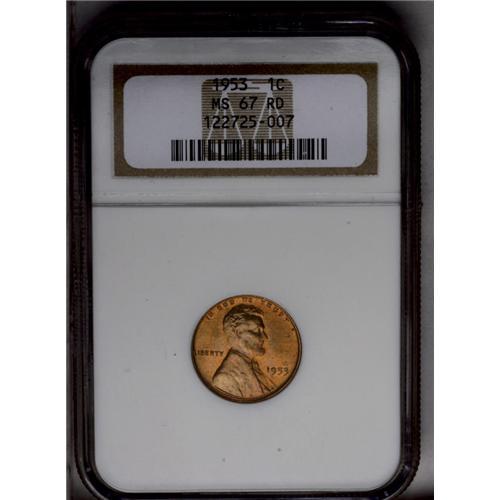 <B>1953<1C> MS67 Red NGC.</B></I> A wonderful orange-red example. Crisply struck, and kept from perfection only by nearly imperceptible flyspecks. Census: 18 in 67, 0 finer (5/06).
