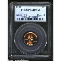 1953 1C PR64 Cameo PCGS. The outward appearance of this fully lustrous specimen is that of a Gem. Th