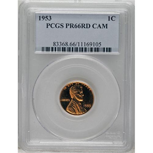 <B>1953 1C PR66 Red Cameo PCGS.</B></I> PCGS Population (53/26). NGC Census: (0/0). Numismedia Wsl. Price: $350. (#83368)<BR><BR><b>Shipping:</b> Coin/Currency (<a target="_blank" href="http://www.heritageauctions.com/common/shipping.php">view shipping information</a>)