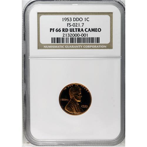 <B>1953<1C> PR66 Red Ultra Cameo NGC.</B></I> FS-021.7. The 1 in the date is nicely die doubled southwest. A gorgeous and carbon-free Premium Gem with radiant devices and rich orange color. FS-021.7 Census: 2 in 66 Red Ultra Cameo, 1 finer (6/06).