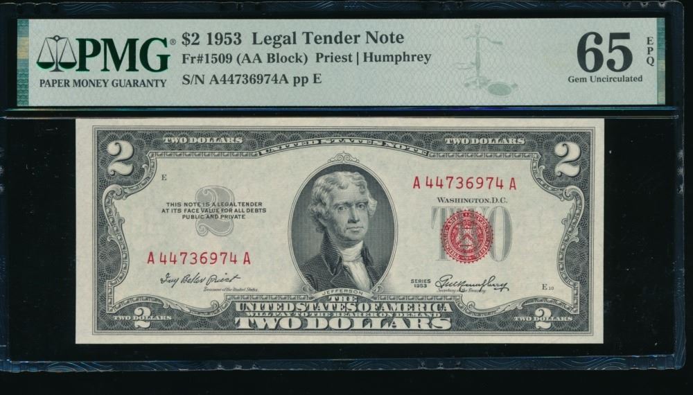 One 1953 $2 Legal Tender Note PMG 65EPQ.