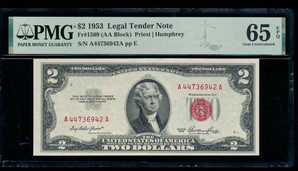 One 1953 $2 Legal Tender Note PMG 65EPQ.