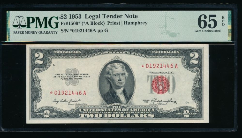One 1953 $2 STAR Legal Tender Note PMG 65EPQ.