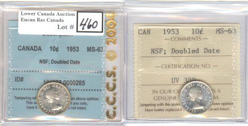 2 Certified 1953 10 Cent: one certified by CCCS, the other by ICCS, both MS-63, NSF; Double Dated