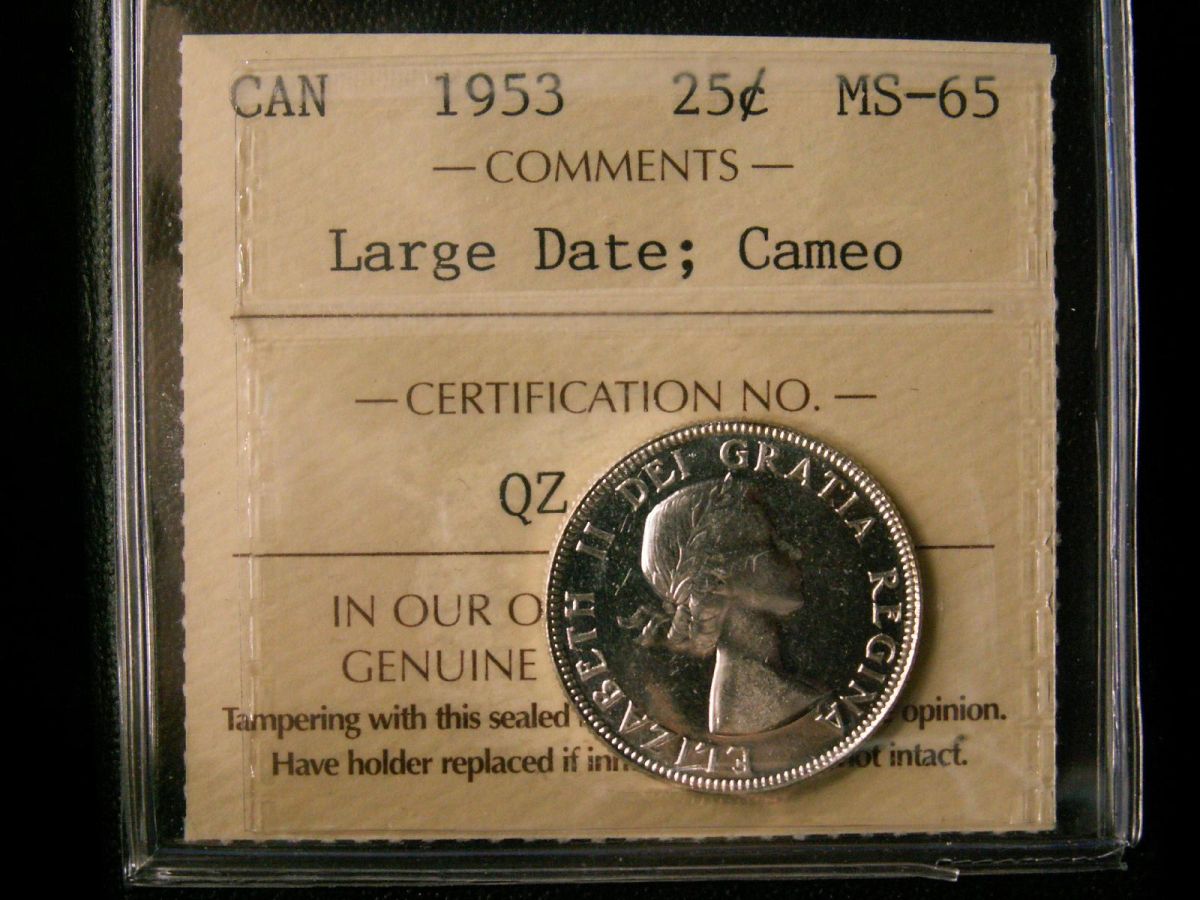 1953 25¢ Large Date NSF ICCS MS65 Cameo. Full white in colour.