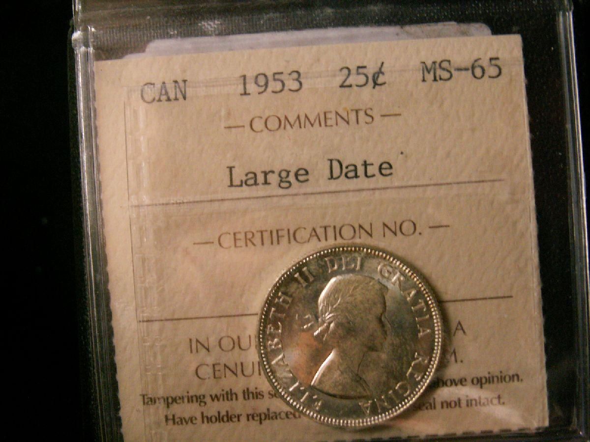 1953 25¢ Large Date NSF ICCS MS65. Lustrous white.