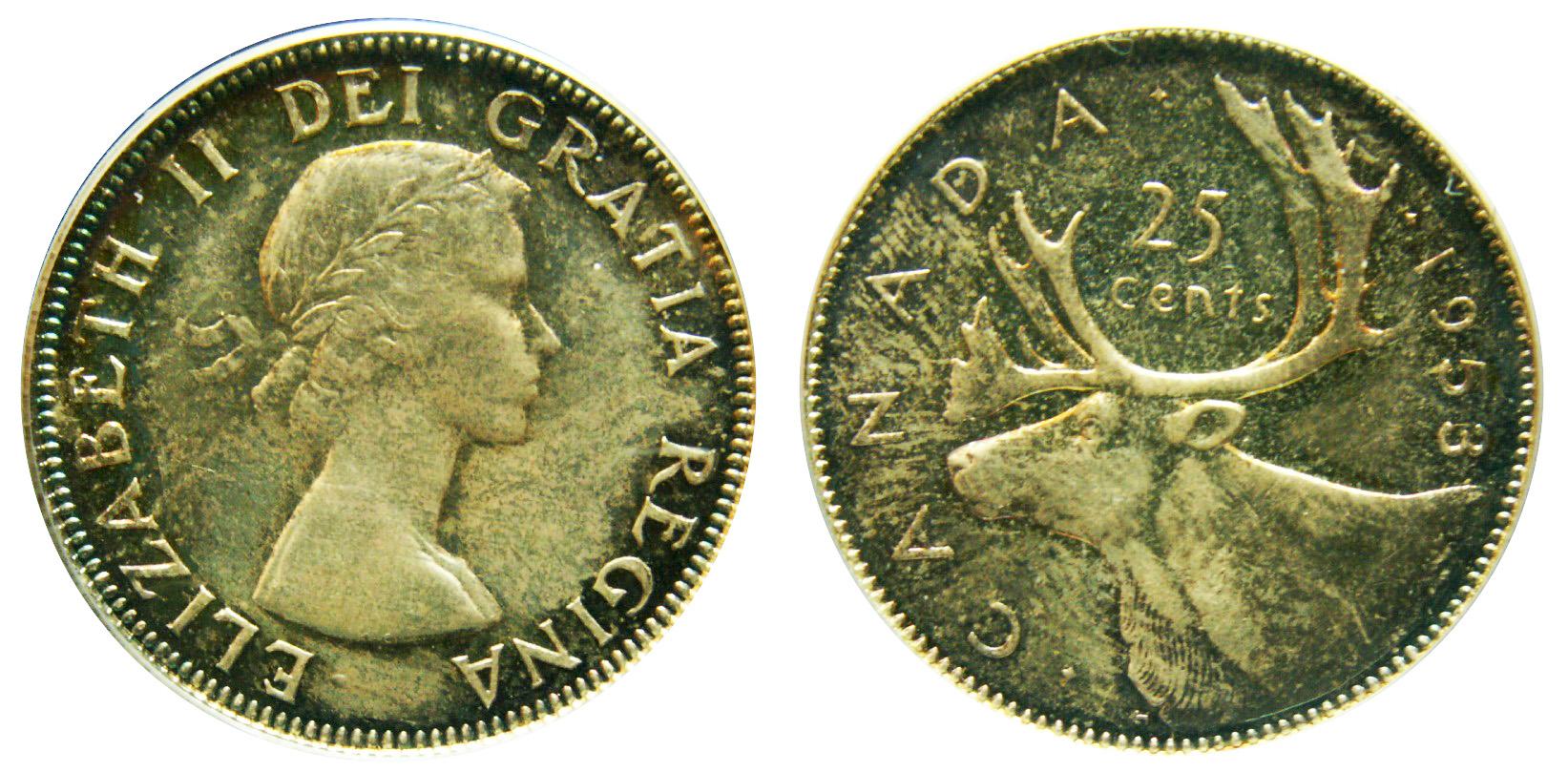 1953 25¢ NSF PCGS MS67. Bluish to gold rim tone. Excessively scarce in this condition