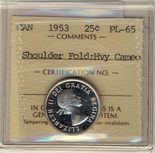 1953 25¢ SF ICCS PL65 Heavy Cameo
