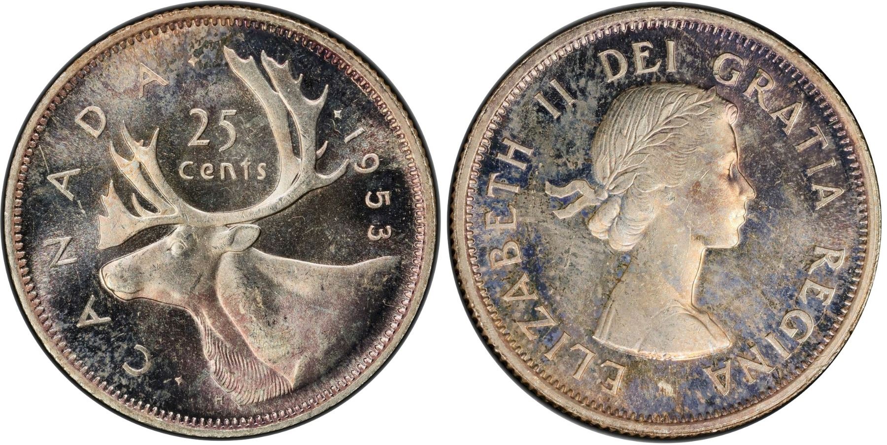 1953 25¢ "SF" PCGS Gem Mint State-65. A flashy example.