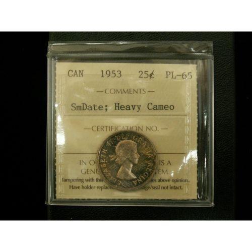 1953 25¢ Sm Date, Hvy Cameo ICCS PL65