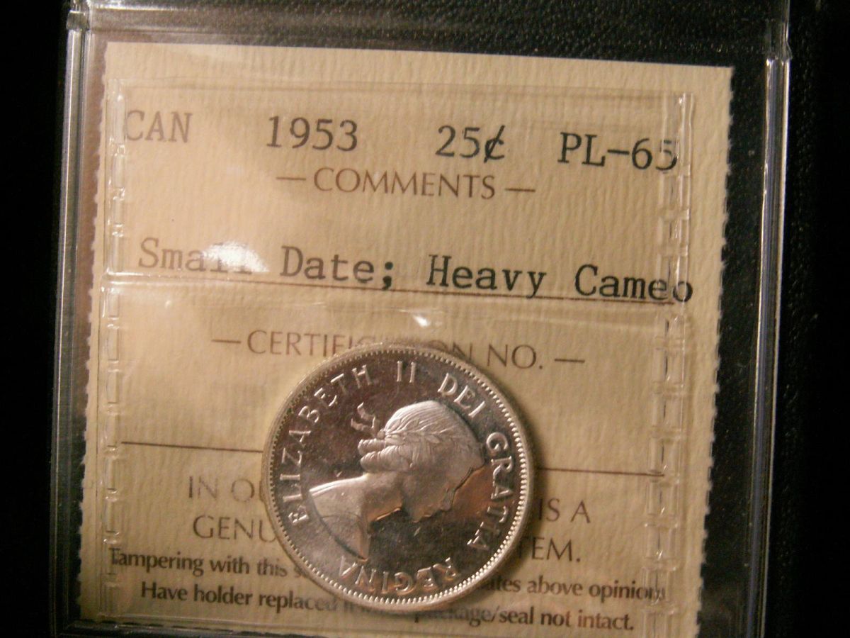 1953 25¢ Small Date SF ICCS PL65 Heavy Cameo.