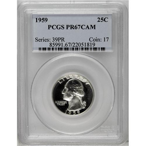<B>1953<25C> PR67 Cameo PCGS; 1954 PR67 Cameo PCGS;</B></I> and a <B>1959 PR67 Cameo PCGS,</B></I> all Superb, untoned specimens with dramatic contrast.