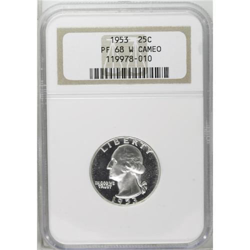 1953 25C PR68 W Cameo NGC. A frosty, blast-white examp