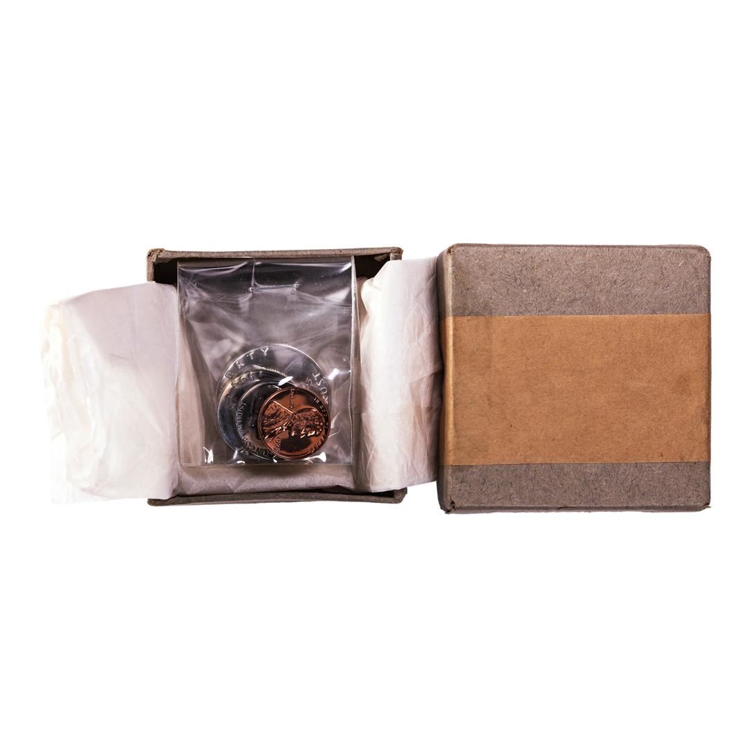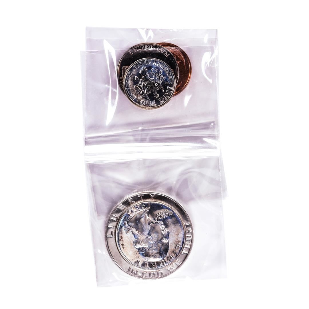 Bidders are advised that certain types of plastic may react with a coin's metal or transfer plasticizer to notes and may cause damage. Caution should be used to avoid storage in materials that are not inert.