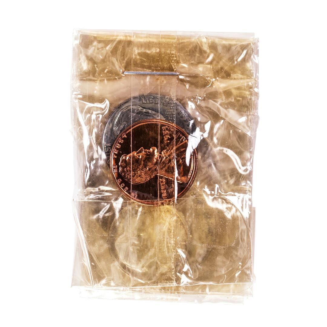 Bidders are advised that certain types of plastic may react with a coin's metal or transfer plasticizer to notes and may cause damage. Caution should be used to avoid storage in materials that are not inert.
