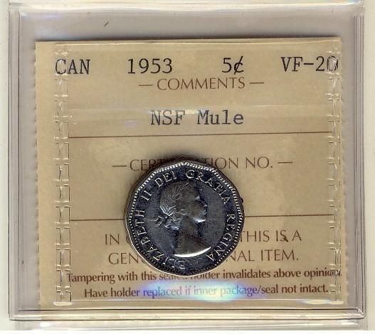 1953 5¢ NSF Mule ICCS VF20. Popular variety.