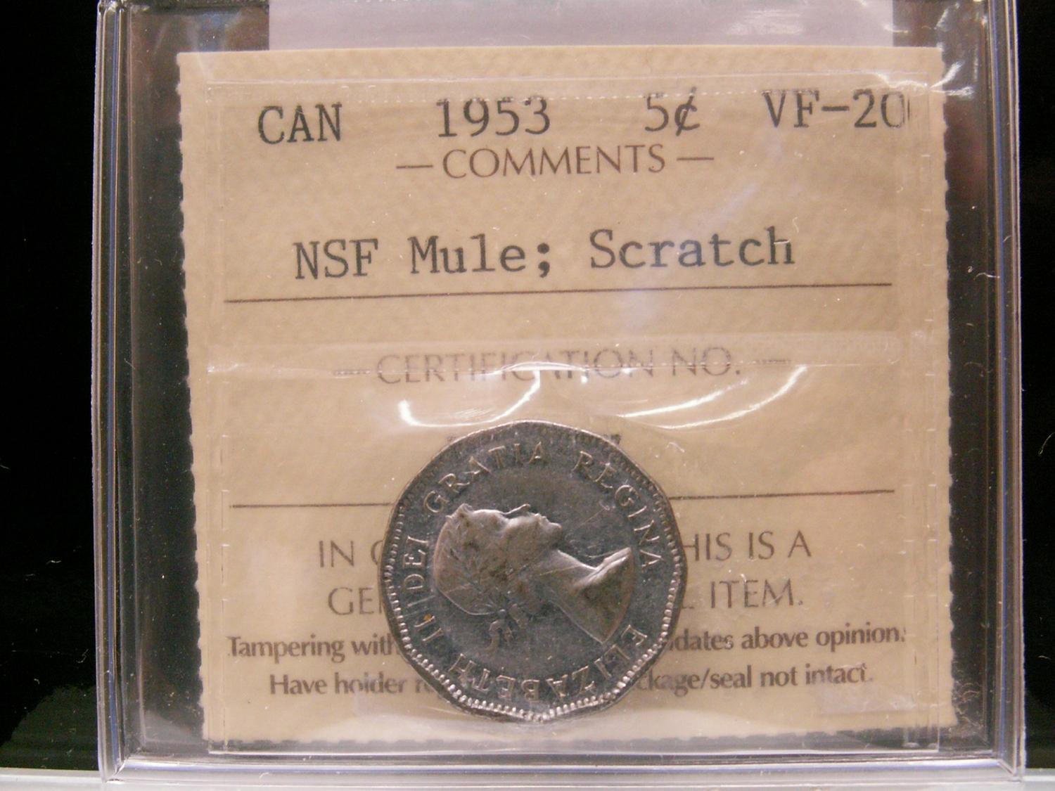1953 5¢ NSF Mule ICCS VF20 Scratch