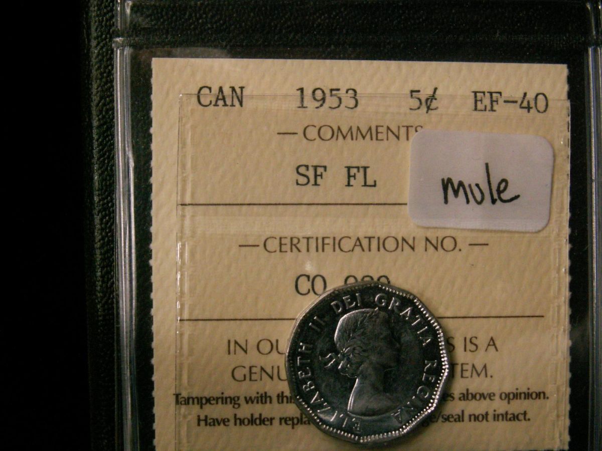 1953 5¢ SF FL Mule ICCS EF40. Holder doesn't designate Mule.