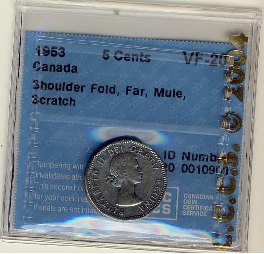 1953 5¢ SF Far Mule CCCS VF20 Scratch,