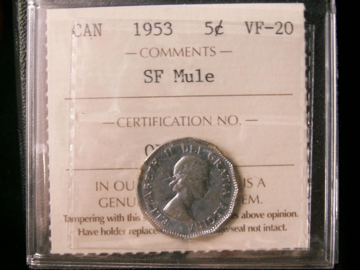 1953 5¢ SF Mule ICCS VF20. A popular variety.
