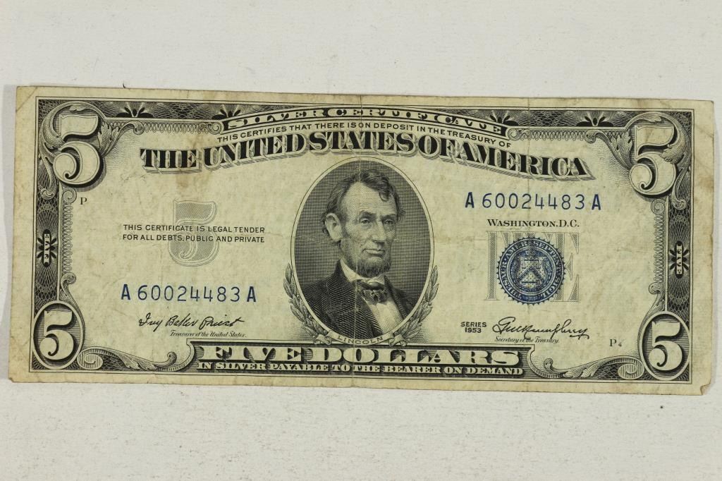1953 $5 SILVER CERTIFICATE BLUE SEAL